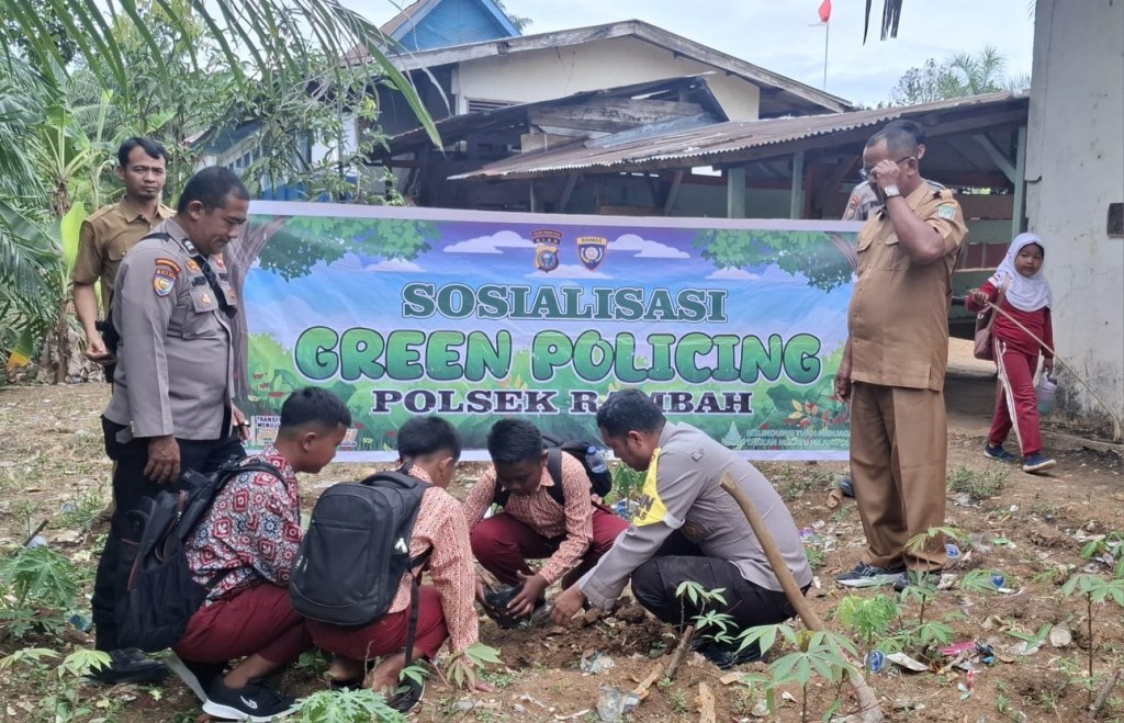 Rokan Hulu — Dalam rangka mendukung Program Green Policing yang dicanangkan oleh Kapolda Riau, Polres Rokan Hulu bersama Polsek jajaran melaksanakan kegiatan penanaman pohon secara serentak yang dipusatkan di lingkungan sekolah-sekolah di wilayah Kabupaten Rokan Hulu, Sabtu (20/12/2025).